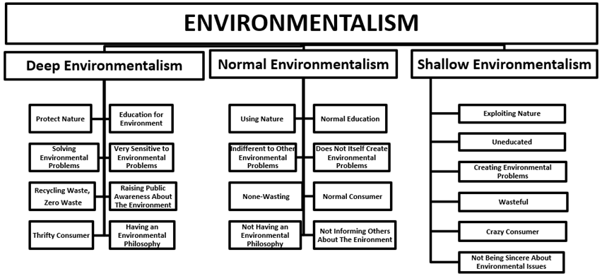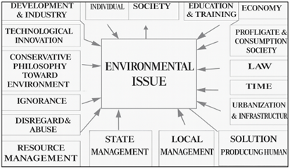 Environmental pollution is one of the current issues. Every day we are confronted with various aspects of environmental pollution, such as water, air and soil pollution, and their relations with human beings (Figure 1). However, we see that real environmental pollution reflects mental pollution. Environmental pollution has a visible part and an invisible part (background). Without understanding this background, seeing the events only superficially and technologically and perceiving the solution only technologically, i.e., “shallow environmentalism”, is the only way to produce solutions today, inadequate. Because the environmental problem has many different interrelated dimensions (Figure 2). In order to produce solutions by recognizing the deeper causes of events, we need to develop a new “human-nature relationship model”, “deep environmentalism model”, and “deep environmental education model”.